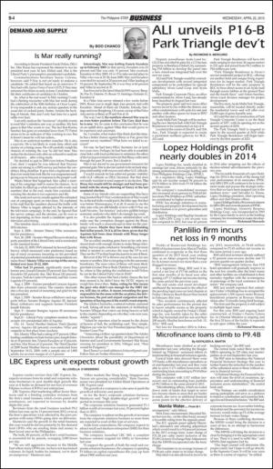 The Philippine Star Business section 4/22/15