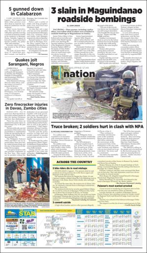 The Philippine Star 1/2/18 is an edition of the publication The Philippine Star. The edition contains 14 pages that you can see below. The edition has 3 supplements that you can href="#pfc-supplements">see below. The PDF file of the edition is 24.13 MB. The previous edition of this publication is The Philippine Star 1/1/18. The next edition of this publication is The Philippine Star 1/3/18. Click on the publication's link The Philippine Star to see information about other editions.